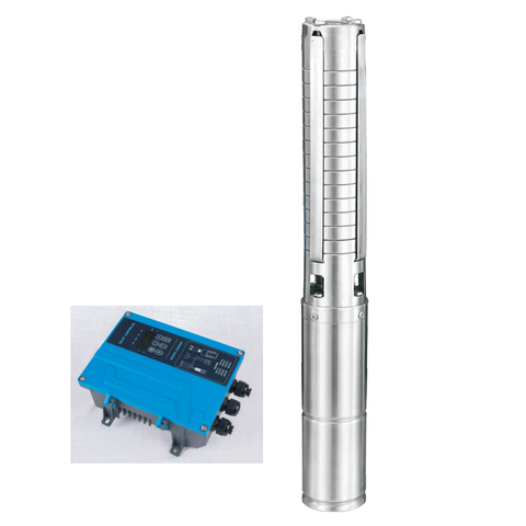 Pompe photovoltaïque submersible en acier inoxydable 3SSIO + 4SSIO DC Contrôleur externe Aimant permanent Puits profond pour l'agriculture OEM